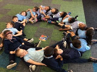 We got the idea for a massage circle from a book. The book is called At the End of the Day. We love doing a massage circle because it makes us feel calm and warm. We think everyone should try it:)