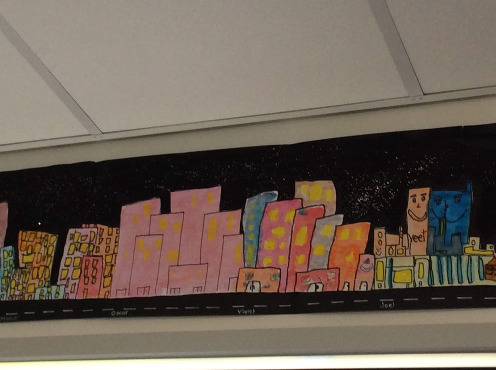 This is our art which we have finished. It needed a bit more sparkle so we added glitter which we think looks like a starry night. When we look at our art we feel happy and proud. We worked so hard and Mrs Ryan is super proud of us!